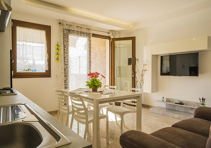 Ancora è un ampio quadrilocale con veranda fronte piscina e solarium.