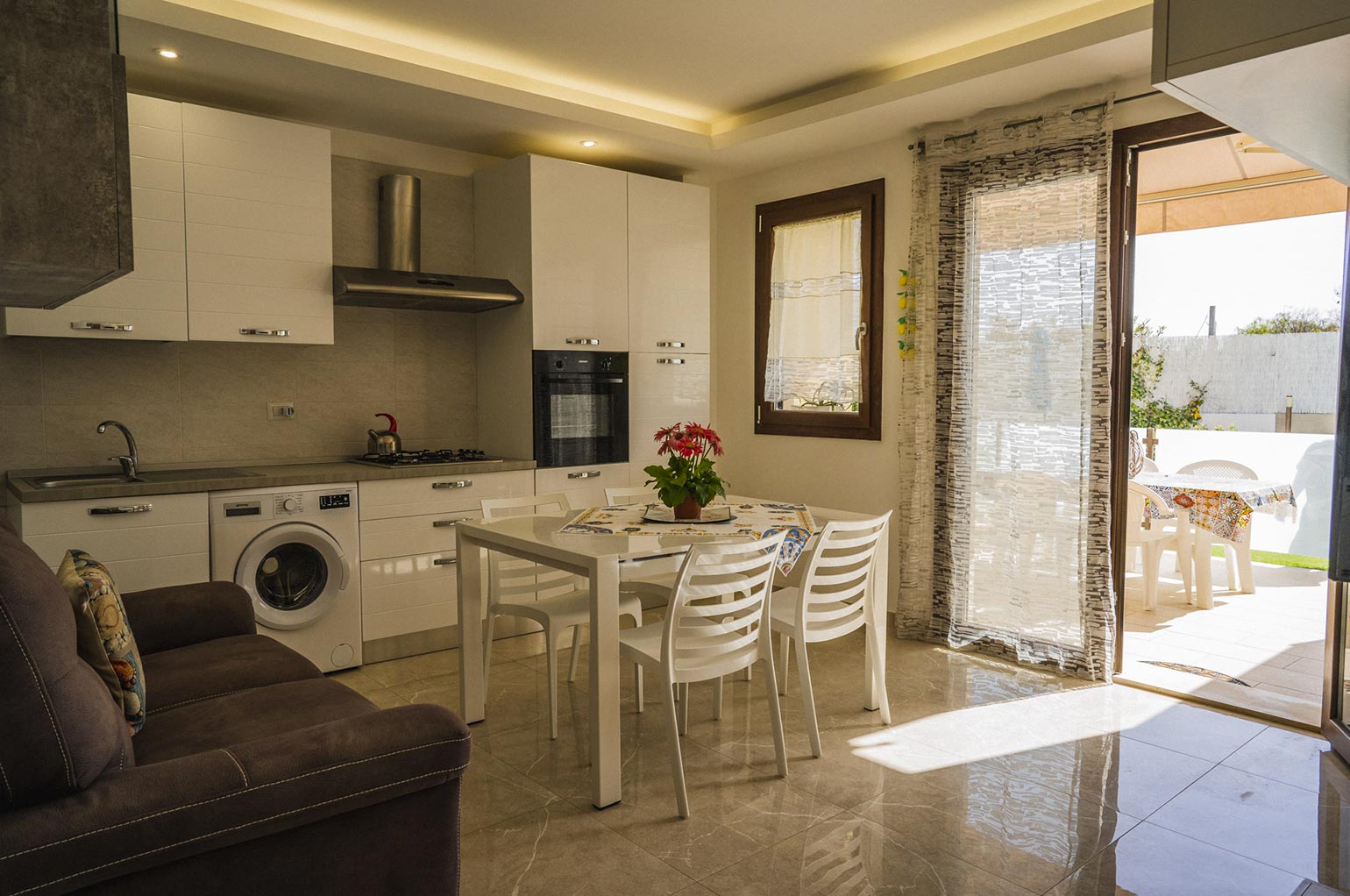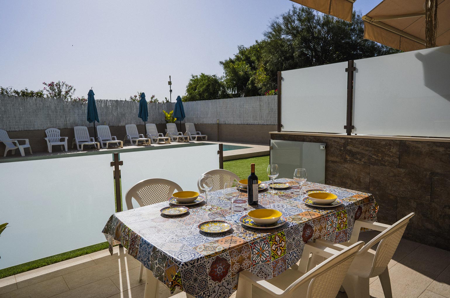 La veranda si trova a soli pochi metri dal solarium e dalla piscina, il luogo ideale per fare divertire i tuoi bambini in sicurezza mentre tu puoi goderti la comodità e il relax di casa.